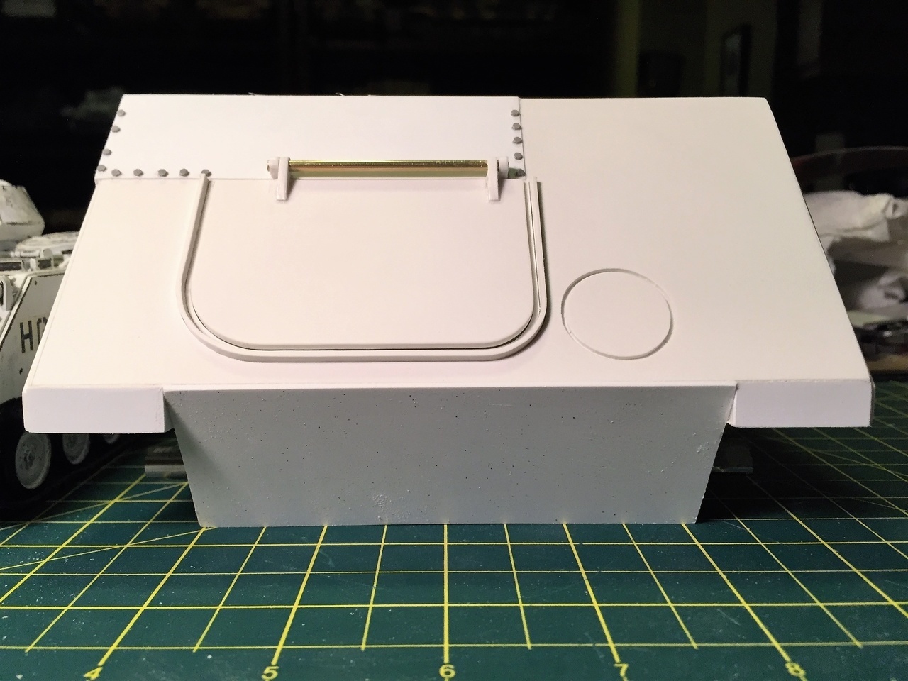 A plasticard sheet was applied to the front lower hull for a tight fit with the upper full.