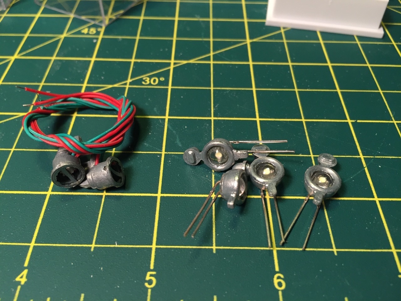 These lights are functional and the wires were inserted into the hull where they will later be connected to the Heng Long lights wire.