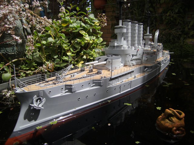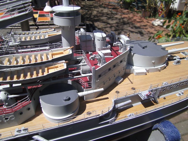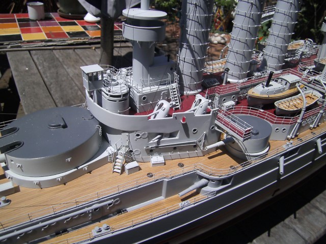 Here are some pictures of my scratch build SMS Preussen. The SMS Preussen belonged to the Braunschweig class consisting of 5 battle ships. They where build between 1902 and 1904. At the start of world war 1 they where all obsolete. I picked the ship for its interesting look. But found out it was quite a challenge to build. It nearly took 3 years to build and there where moments I questioned my judgement to pick a difficult model like that. But at the end it was all worth it. It is fully radio controlled and looks great at the pond.