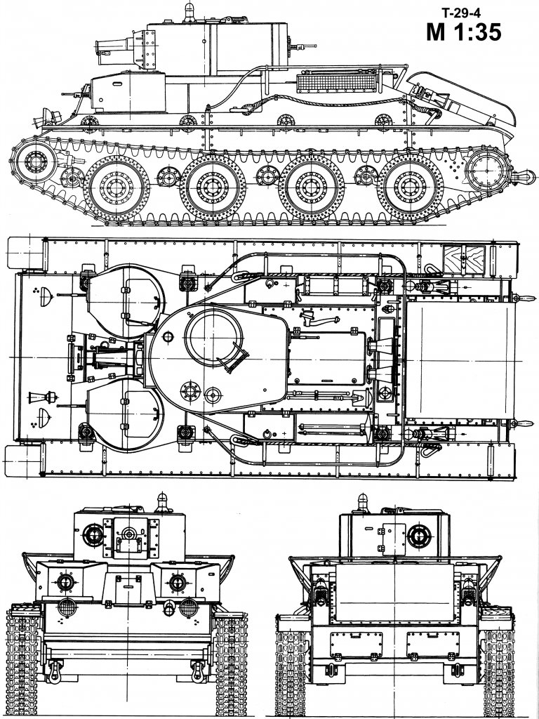 The development of the middle wheeled and tracked tank in the USSR began in 1933 with the preparation of the Auto-armored Bureau of the technical department of the ECU OGPU of a number of sketch tank designs that represented the further development of the BT-2 tank and largely relied on the T-28 tank recently developed.In 1934, the experimental T-29-4 and T-29-5 tanks were built at the Kirov plant in Leningrad, where the T-28 was being developed at the time. In 1934-1935 T-29 tanks underwent many tests, including comparative tests with T-28.According to their results, it was concluded that the T-29, although more complicated in production, but is of great interest due to the high speed and good maneuverability.By results of tests in 1936 at the Kirov factory the reference sample ?-29 was made.