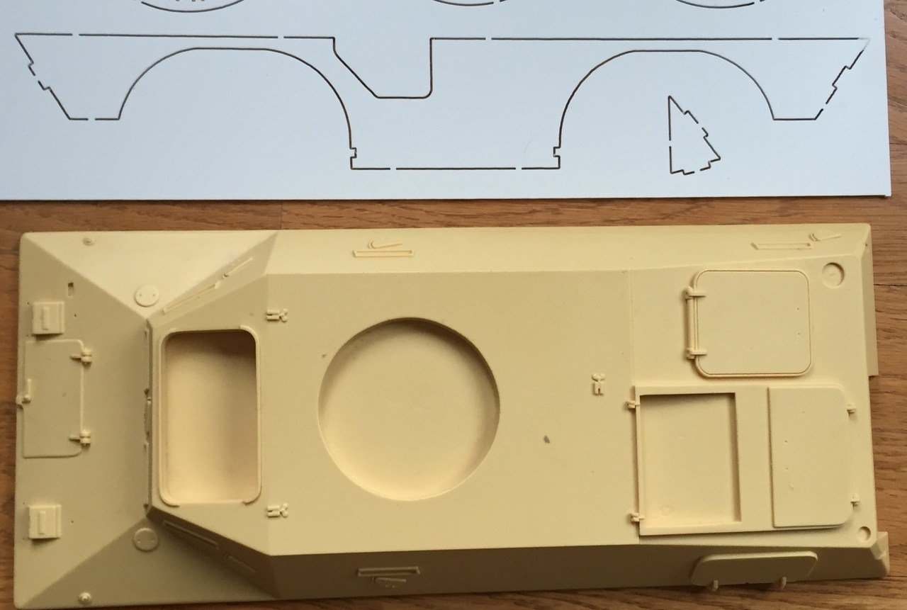 I think the ludwigs turret is much closer to the Belgian Cockerill 90mm turret (1/35 Hobby Boss kit below) and this is probably the best options for builds that will use the Ludwigs turret. There are a few corrections to be made however. I did not see picture evidence of the side by side hatches aligned like the kit part, the commander's hatch should be a bit more forward. In any cases, I have decided not to use the kit turret. I will build a new smaller turret that fit the V-100 Commando. I will keep this turret for a future project. The top part of the upper hull with the turret ring will be replaced as well.