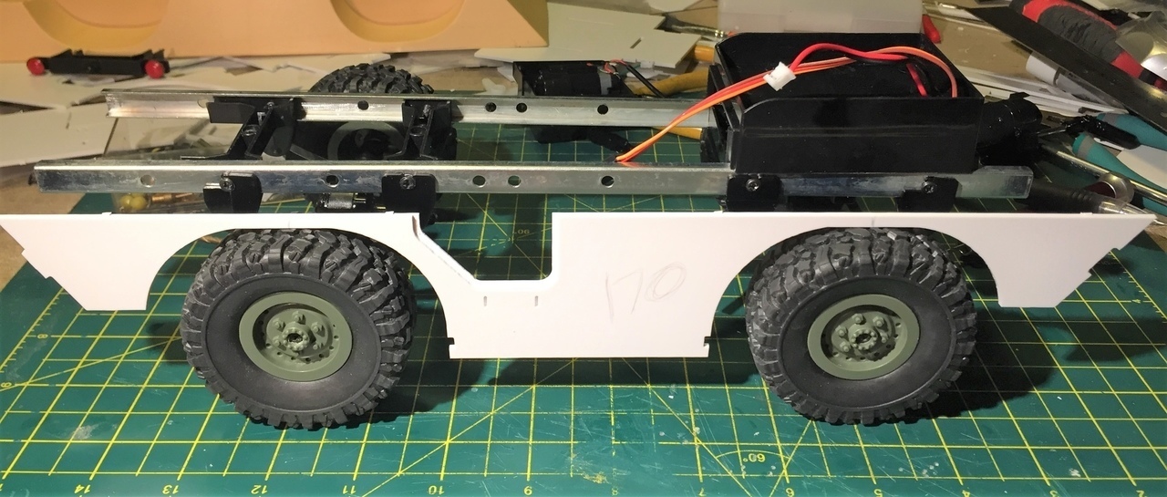 Here I am comparing the WPL chassis to the Warrior hull to mimic the potential integration to the Ludwigs hull to help plan the options. The axels have the right length.