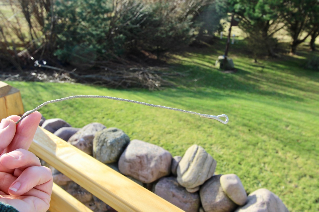 Some time back faced with a similar problem I tied a length of cotton around the metal loop and tied the other end to a clothes hanger dipping the "String" into a tin of "Hammerite Silver Paint",