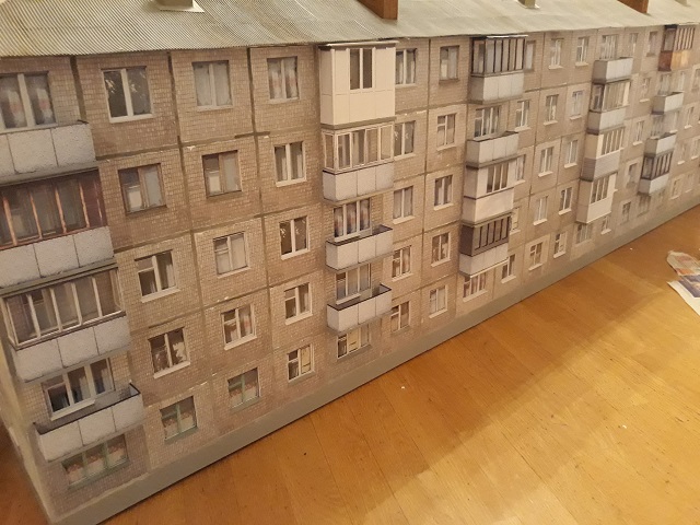 The first home for the landfill is a modern city. There will be another 5-storey houses, 9-storey houses, distribution substations, kiosks, garages and parking lots. Across the landfill will be placed cars in the 22-24 scale, trees and bushes