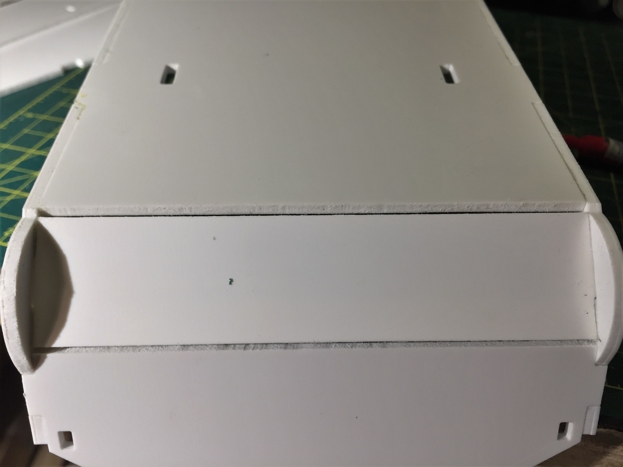 Plasticard strips will be required to fill the gaps and solidify the joints. Then an overlay plasticard sheet will be applied over to make the front plates seamless. These gaps must be expected by the builder and should be dealt with a cooler head in subsequent steps once all the main parts are in place and the overall situation can be assessed.