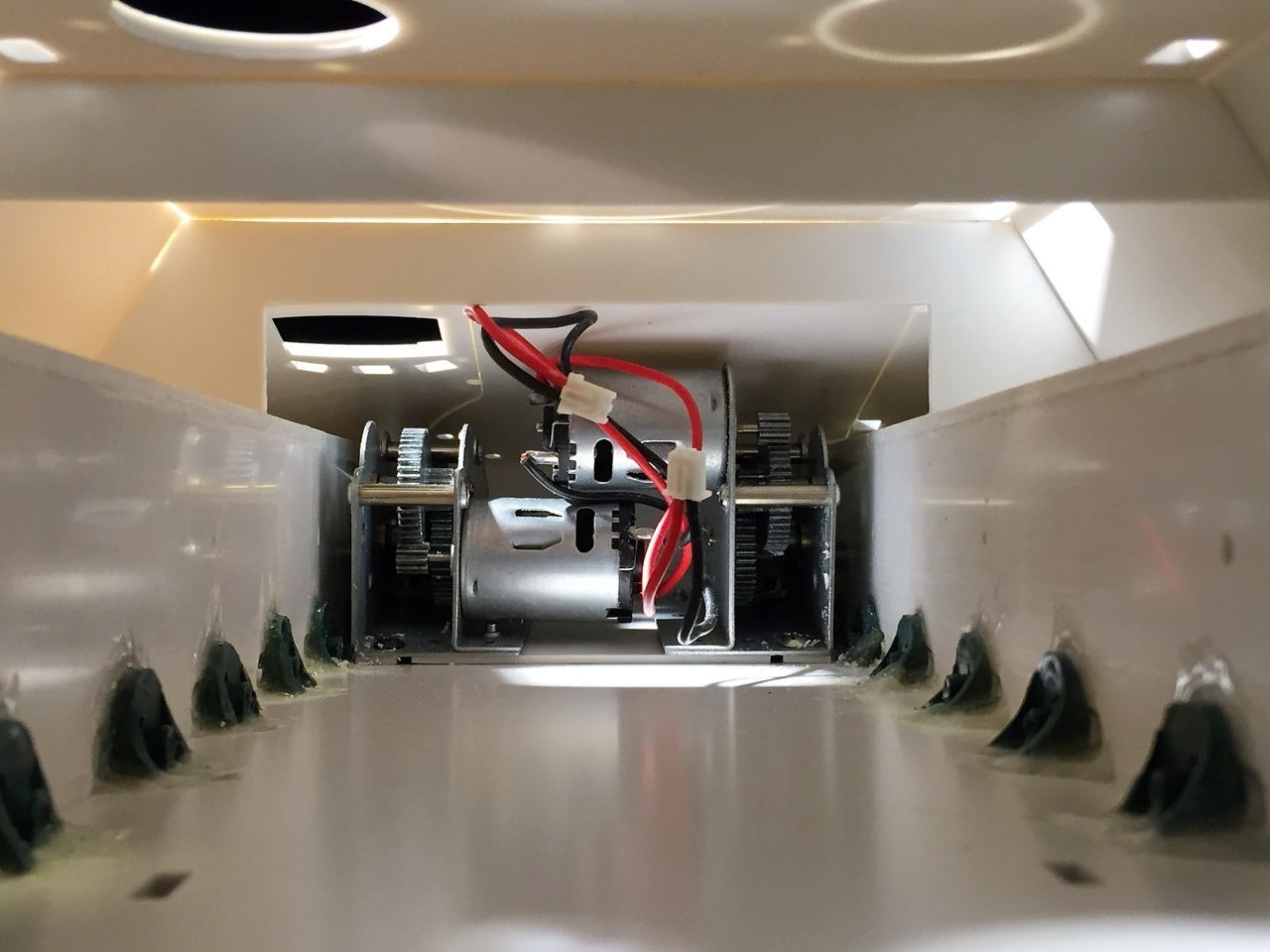 When positioning the gearbox, it is critical to install it so that the custom wide sprockets are centrally positioned between the schurzens and the hull, and same on both sides of course.
