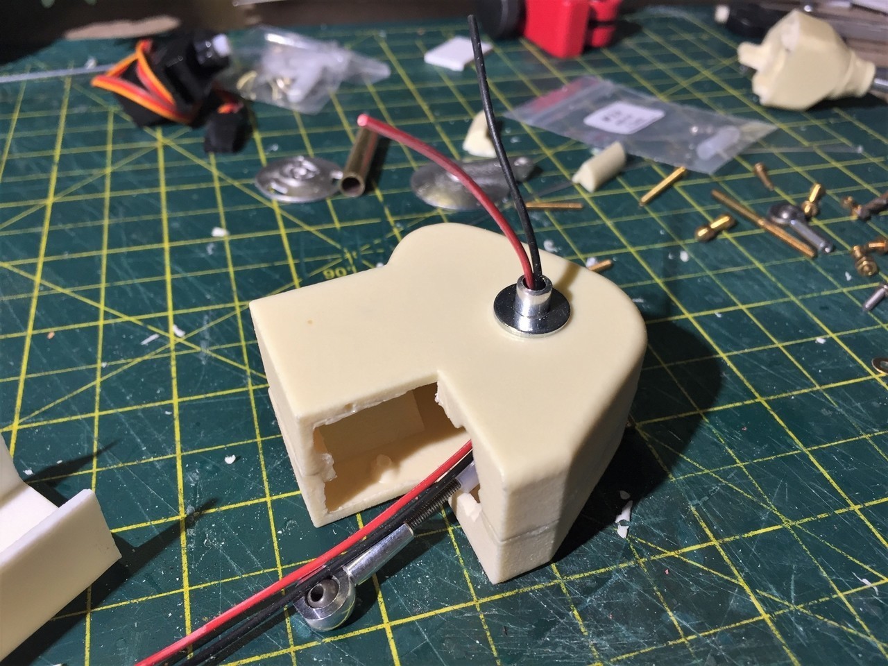 A small servo under the turret roof will provide elevation. I will install it later at the same time as the rotation unit to ensure no mistakes in the placement of the servo.