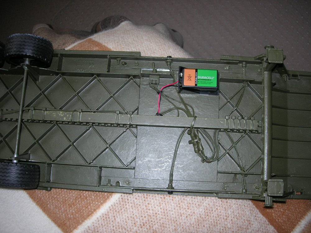 The trailer started as one of these from Bruder, see ebay link below. Extended by 4 inches and lights added.