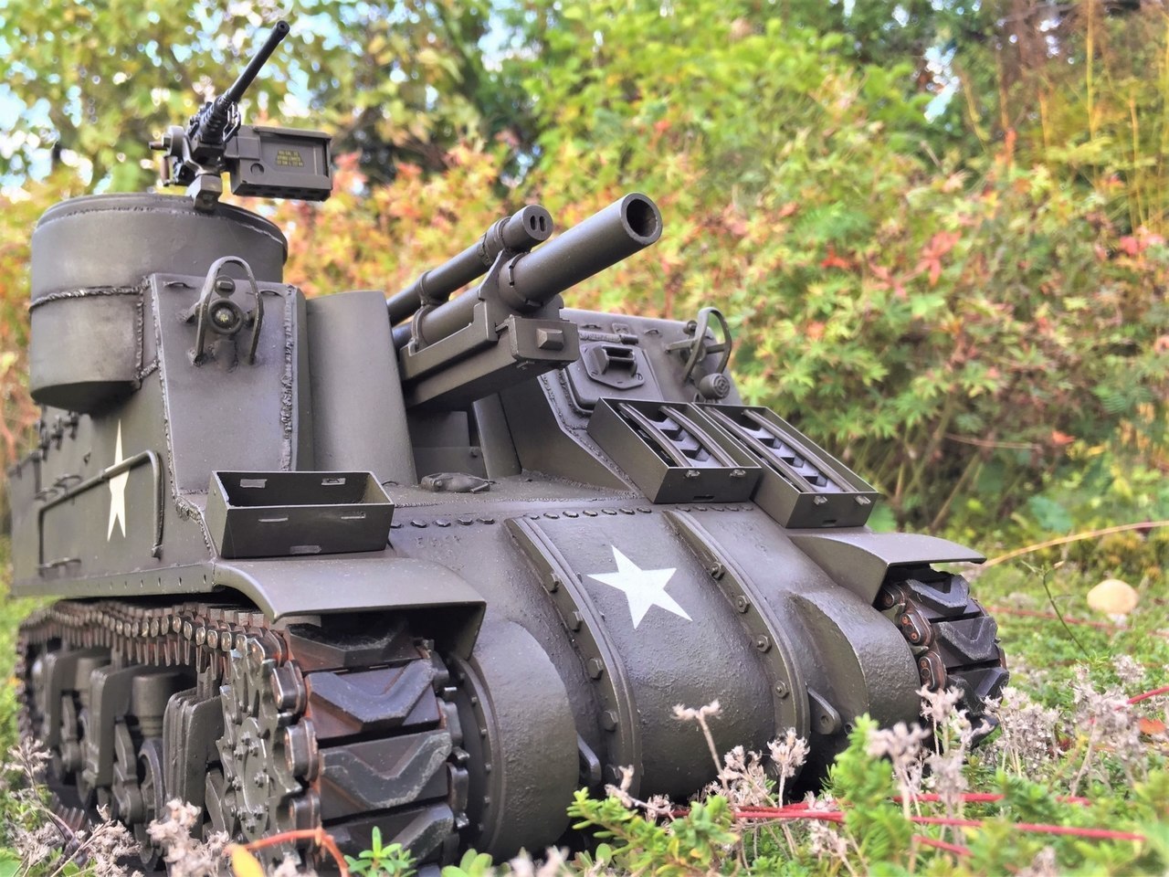 My attempt for this month, a hybrid firefly, the hull, turret and Churchill tracks came from flamme, was stripped down and rebuilt as a full RC battler by me, with a mato chassis.
