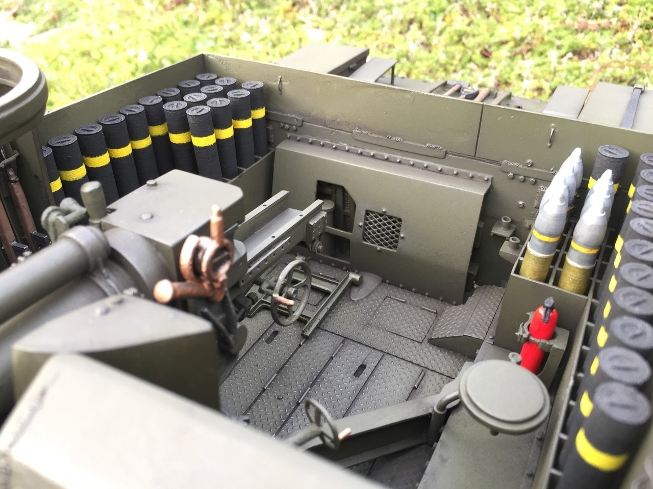 The extended Panzer IV chassis, scratchbuilt upper hull and 3d printed 88mm cannon are all by Alwyn Turner. The fine detailing and interior fittings are by me, as are the paint and weathering.
