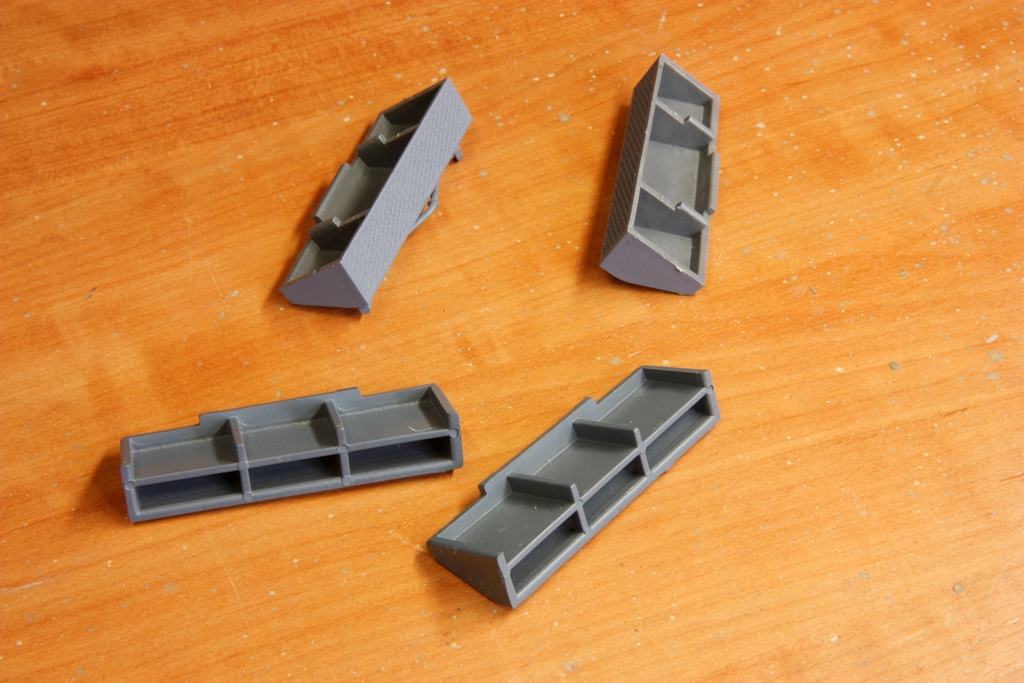 Stugs have a plethora of hinged metal hatches available from Mato, so for no good reason, I went for the lot. At least it will give them a meaty feel and provide some options for the smoker refill and charging socket locations. Here are the front ones.They come with hinge pieces that need to be mounted.