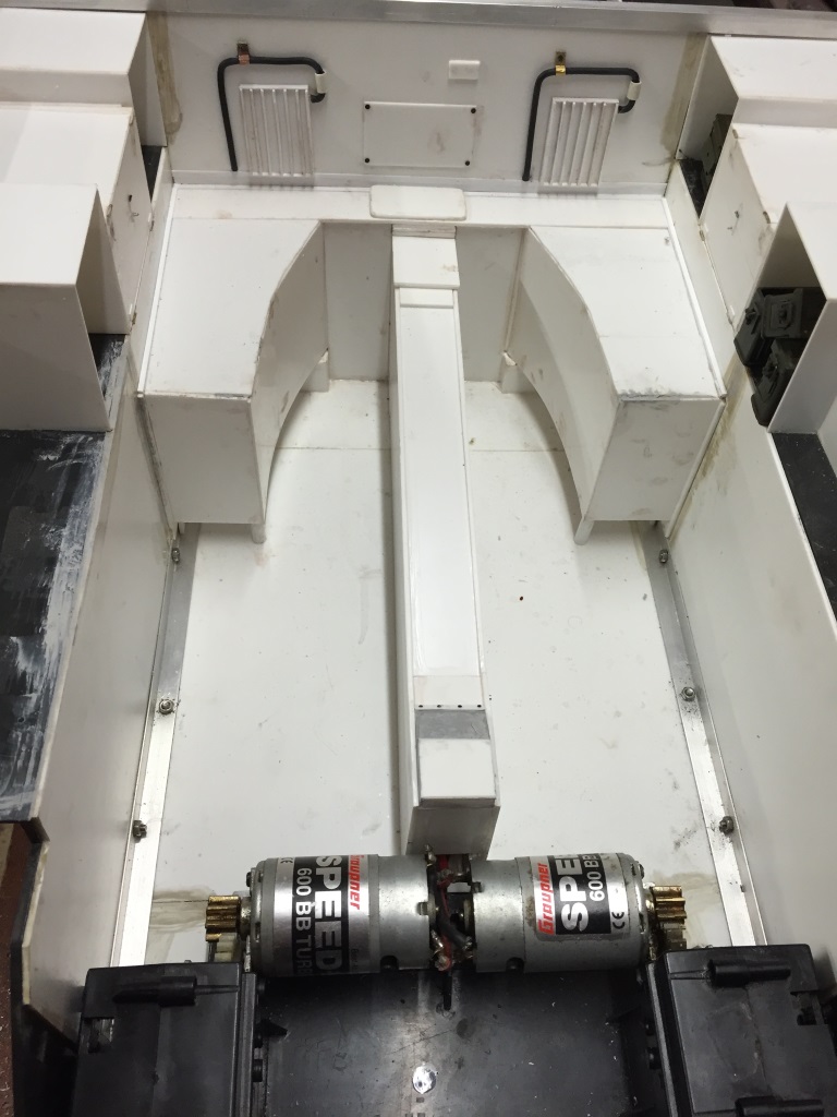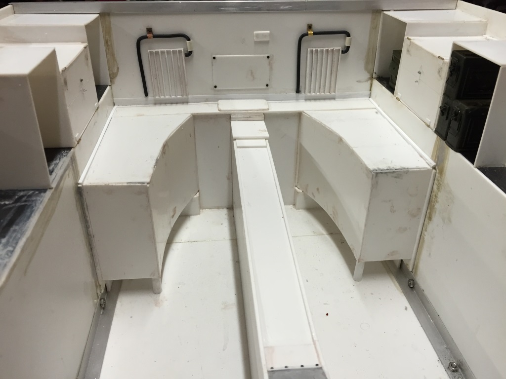 The transmission tunnel is pretty well complete, and ive added pipes and hinge & latch detail to the boxes on the sponsons.