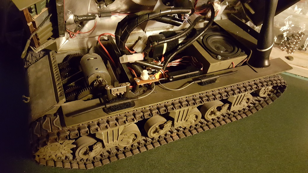 Good evening all. I got a neat thing in today which I had been waiting for to upgrade the M36s performance. The neatness is a 10 channel RX made to work with that Flysky radio that I got from MaxMekker to run the late Tiger 1 that I got from Jackalope. It works great with Clark boards and both the Tiger and the M36 use Clark TK-24s. To make a long story short, I sat aside the old six channel RX and the equally old Flysky i-4 type TX that MATO uses with these metal tanks and dropped in the just bound 10 channel. I had saved the M36 to the Flysky as Model 2 and after I charged the battery and hooked everything back up, I did a short video showing off the new ease of functionality ( and it was too!...so much easier than the TX that came with the tank from MATO ). Anyway, here is the video link and a couple of pics: ( click to enlarge )