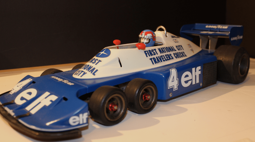 Entex (Static) 1/8th scale Lotus 72D, Tamiya 1/10th scale r/c Tyrrell P34, and Kyosho 1/8th scale r/c Ferrari 643...