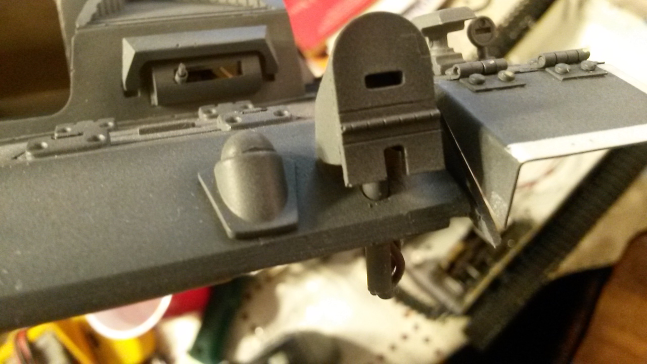 I used the plastic tow shackles as I figured they would be stouter than the resin parts. They are mounted to the lower hull.