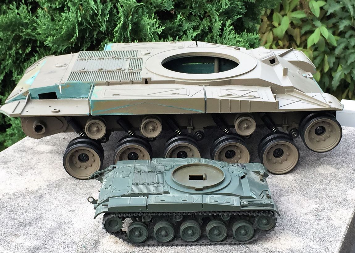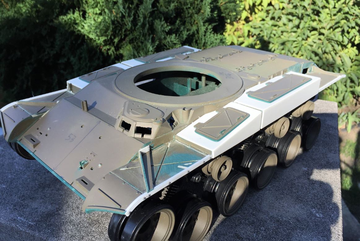 The good news is that the hull width is of the right dimension. The fenders and tracks will need rework.