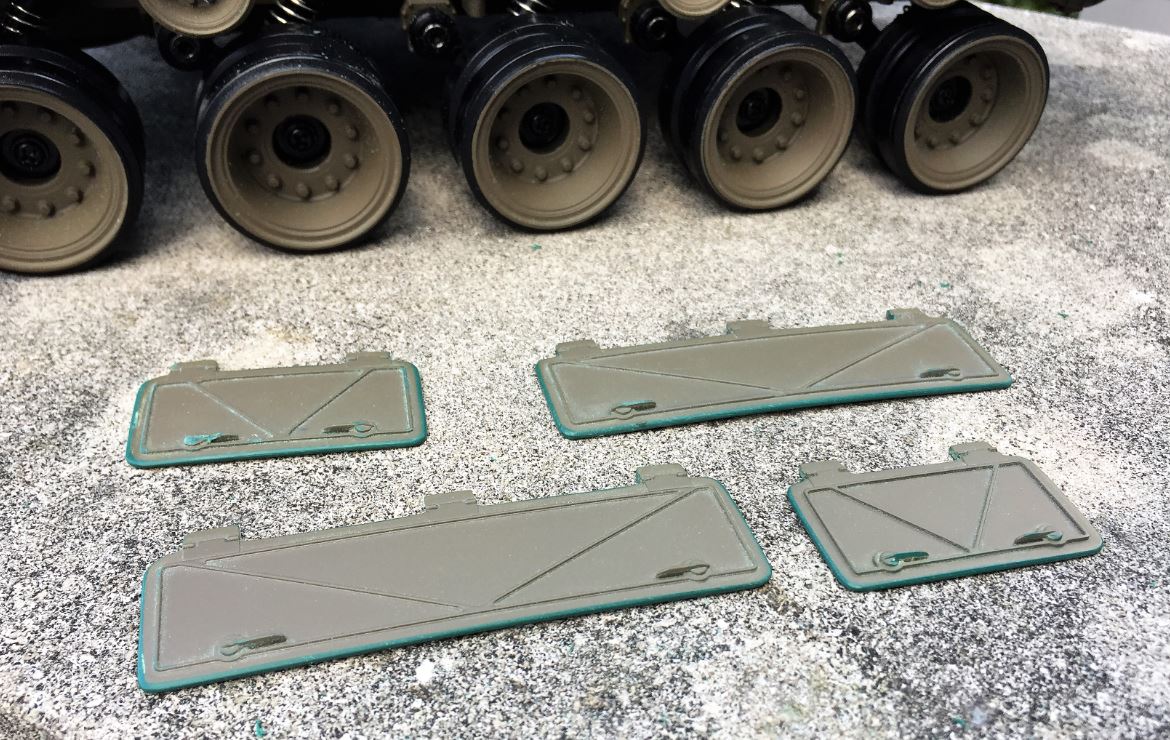 I've seen builds where the modeller removed up to 10mm in height. After a lot of picture and plan analysis where the space between the tracks and fenders always seems to be different, I have determined that I should remove between 7 and 7.5mm in height.