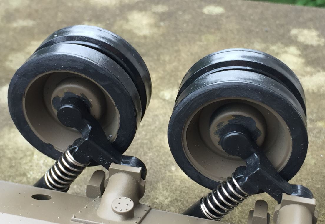 Here is the modified suspension and roadwheels.
