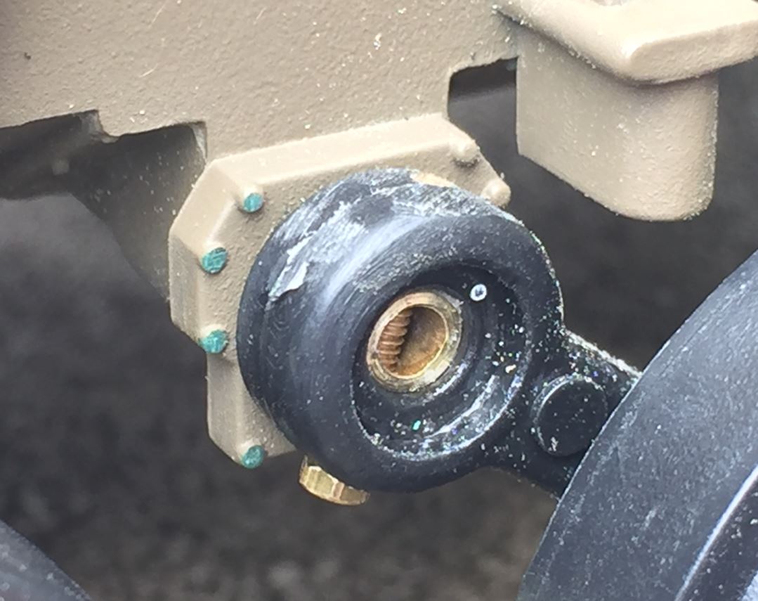 Detail showing how the bolt is holding the suspension arm with the brass shaft.