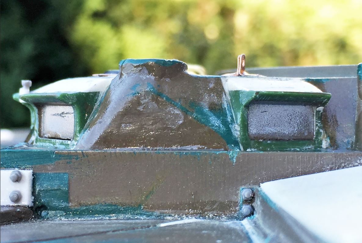 An angled plasticard strip was added to the top of each periscope to repro the angle seen on reference picture.
