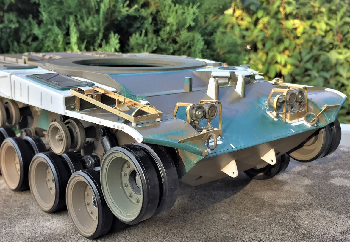 Left fender. I built them exactly as I saw them... no dimensions were available. They look ok. Also noticed the HL round hook that was beefed up with a couple of layers of superglue applied to them. The front fender tips were inaccurate and needed to be reshaped to be closer to reference pictures. Be aware that early M41 models had squared front fenders, and later ones had this angular type starting with tank number 2,593.