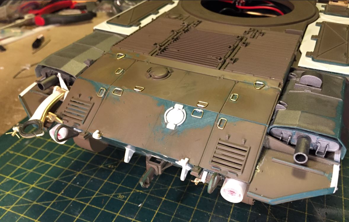 The old mount that Heng Long designed on the heat shield at the back needs to be removed, plugged and sanded smooth.