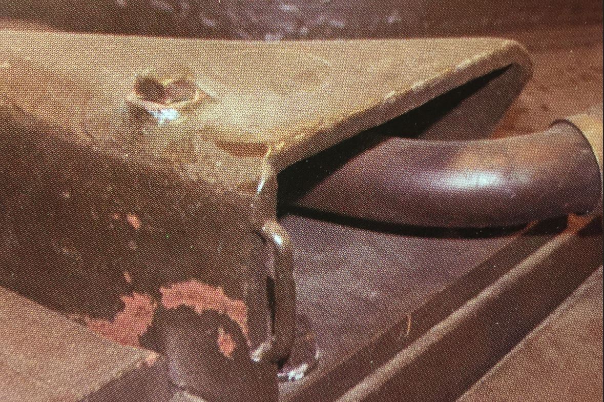 The thing about close ups is that they highlight issues. Yeah, I need to redo this bracket where the auxiliary engine muffler pipe exits the hull.
