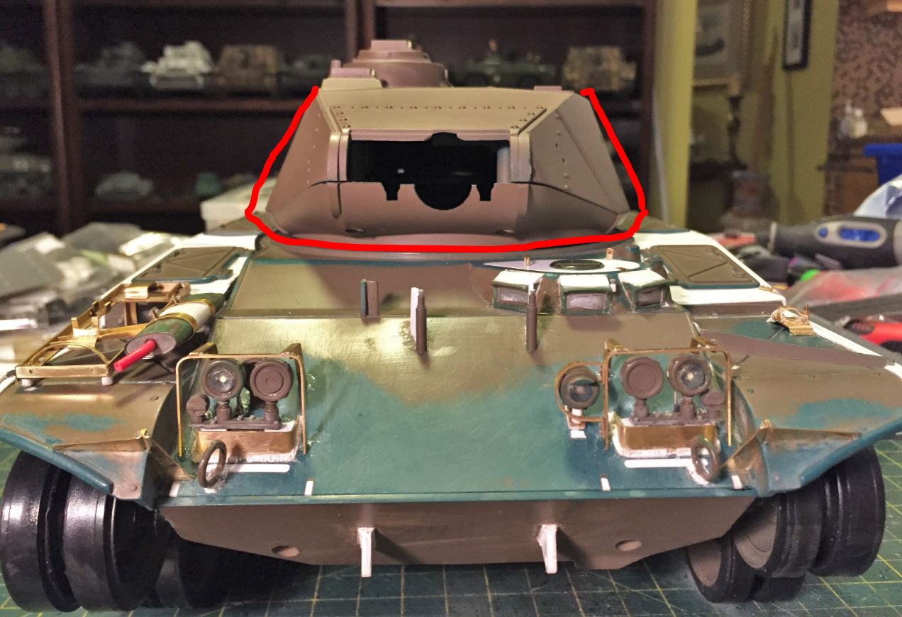 The area in front of the commander's cupola will be reworked. The cupola bust at the front does not have the right angle and will be extended.