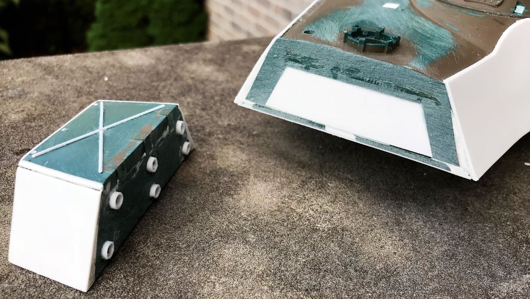The top of the turret is sanded, and a rule must be used to ensure all the support are properly aligned top to bottom in a strait line to have a flat armor.