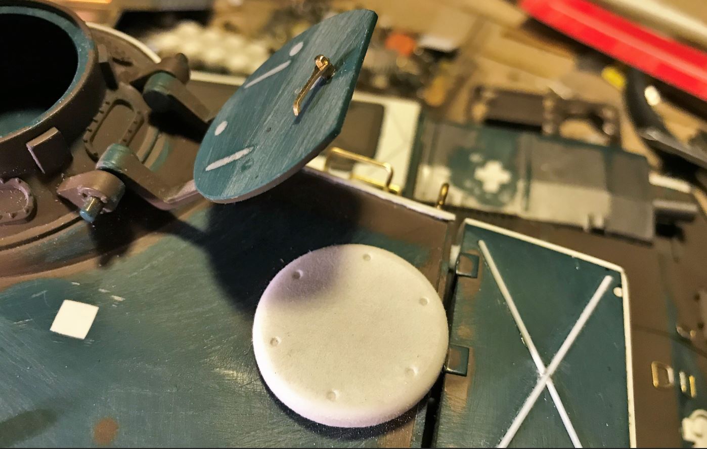 The Heng Long part for the air vent at the back was too small. The Shapeways replacement part that I ordered was too big... According to my calculations, the air vent should have a diameter of 28.5mm. The Shapeways part was 30mm. Ok, it is just 1.5mm too big but it really looked oversized. So I had to sand it down to the required dimension and polish it. It looks better now.