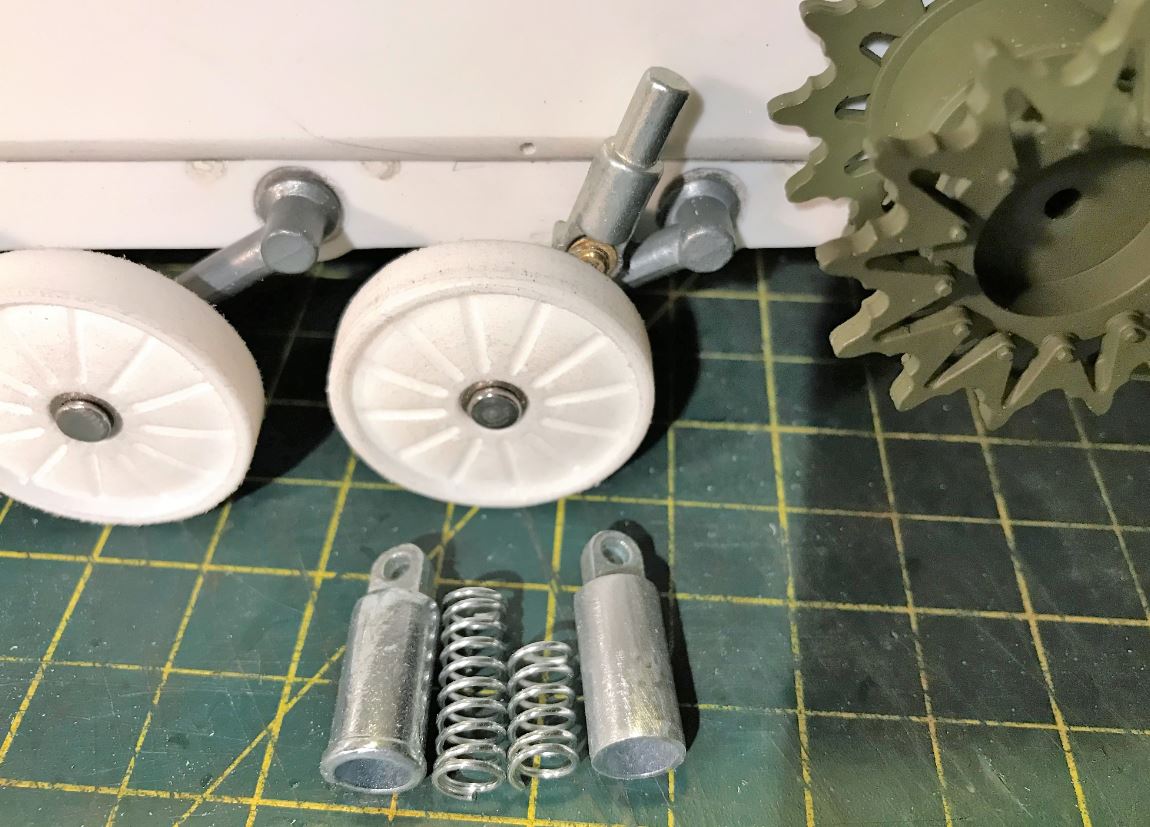 The PzIII shock absorber is refined and the spring is shortened. Updated version on the right.