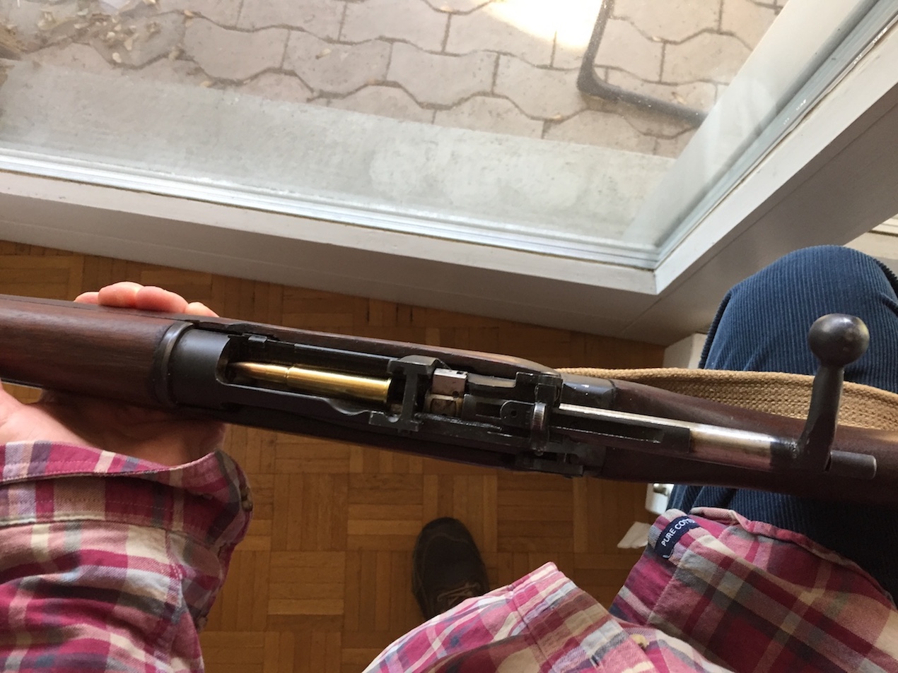 - Airforce or Navy cut the handle off as the lack of weapon discipline often meant the ejected case would bounce back into the port after hitting the handle not properly closed out of the way. And the butt plates were worn flat often as used more on parade than on exercise.