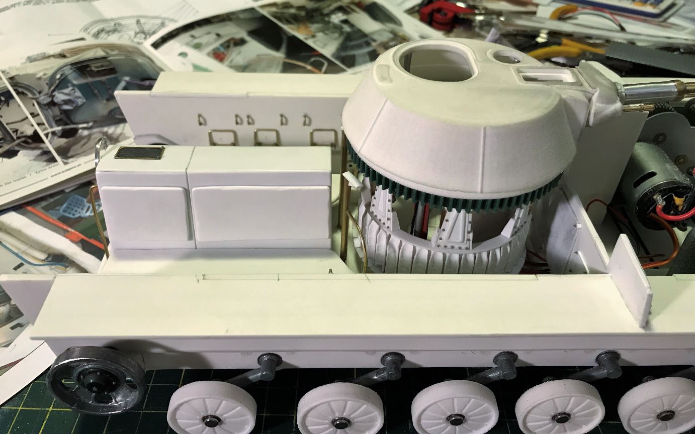 An HennTec Panther adjuster was modified to fit the BMP without taking too much room inside. The whole thing was cut in pieces. Plasticard spacers and reinforcement were created for the fit to the hull.
