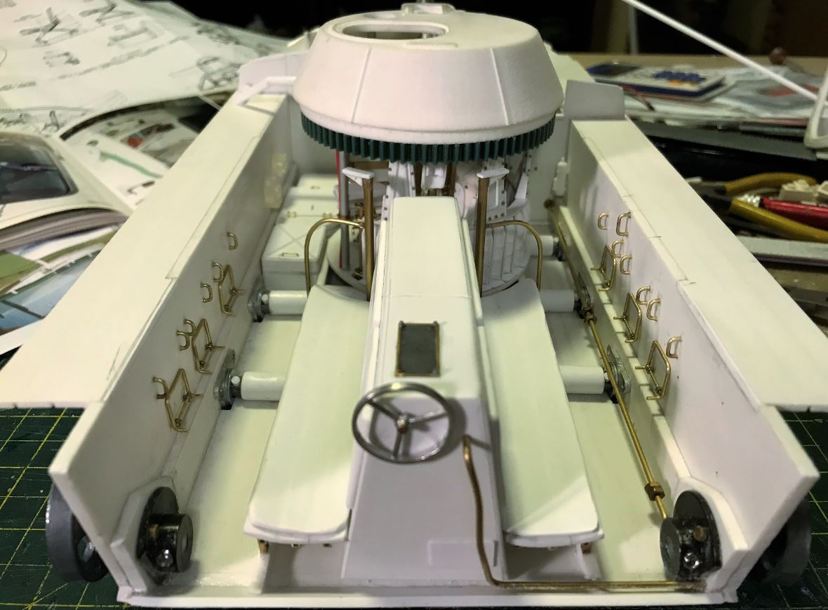 More views of the interior. Looking at the pics, I realised that I have to redo the tie downs on the sides with a much thinner brass.