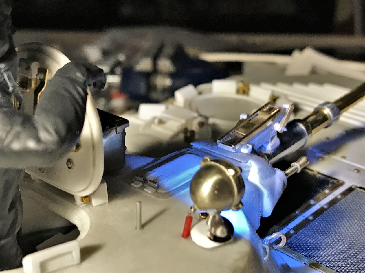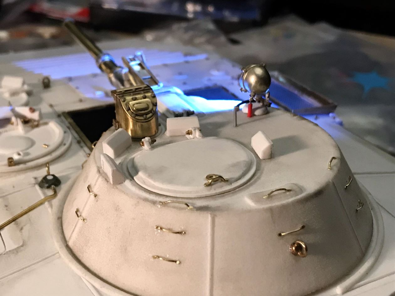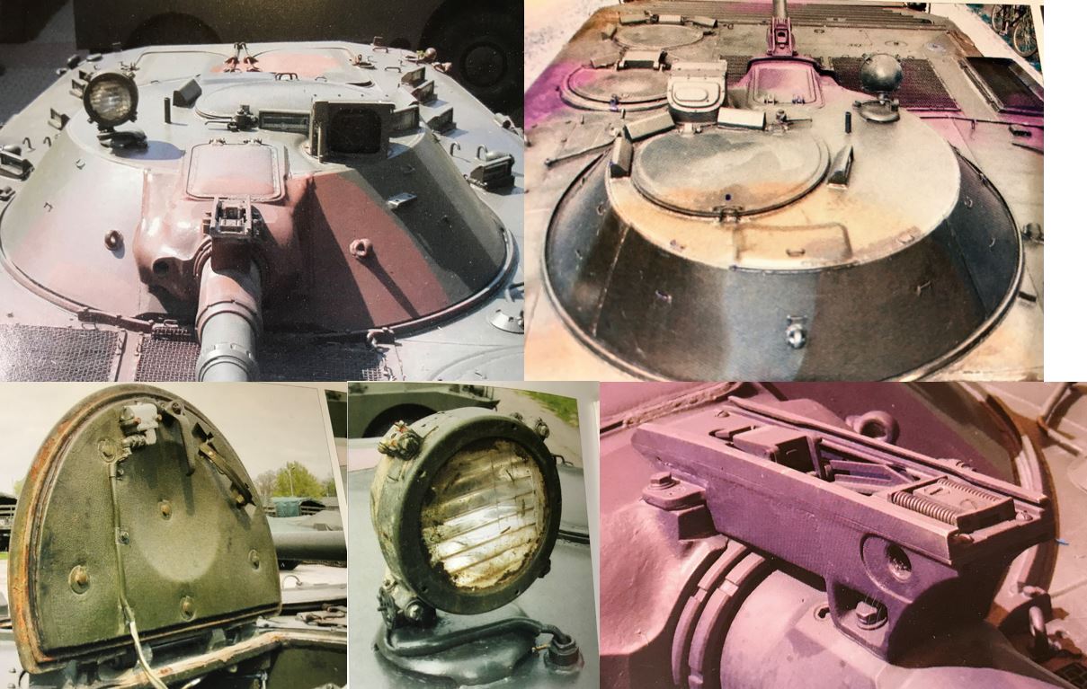 I had to study all references to recreate the exterior. The spotlight is an T55 item from AFV_Model, the rest is scratch built the best I could with what I had in material, with the couple of days I wanted to spend on it. The optical device was fun to build in brass.