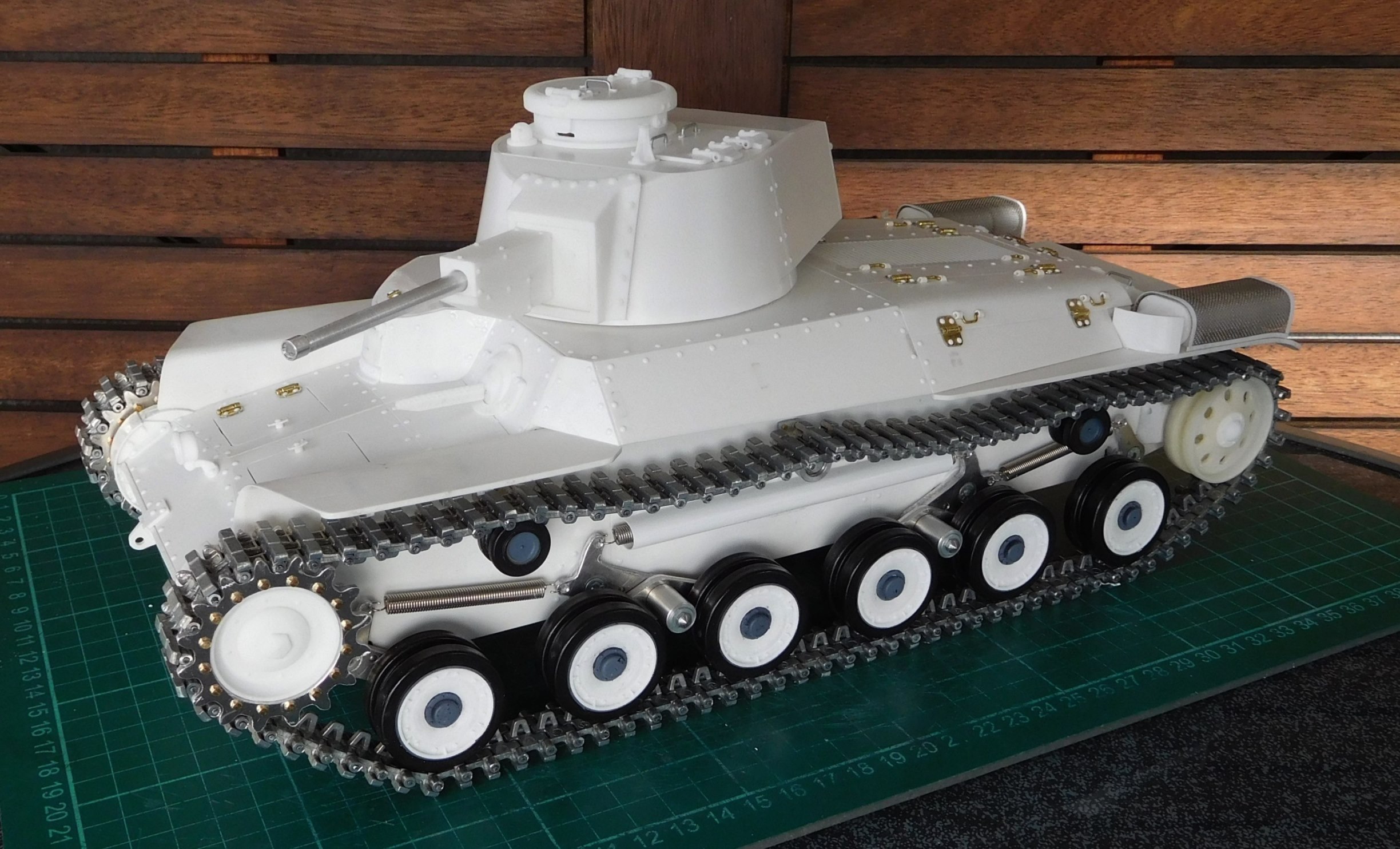 The tank kit was designed by Panzerjaeger66. It is made of styrene and printed parts. All electronics are from HL and Mato.