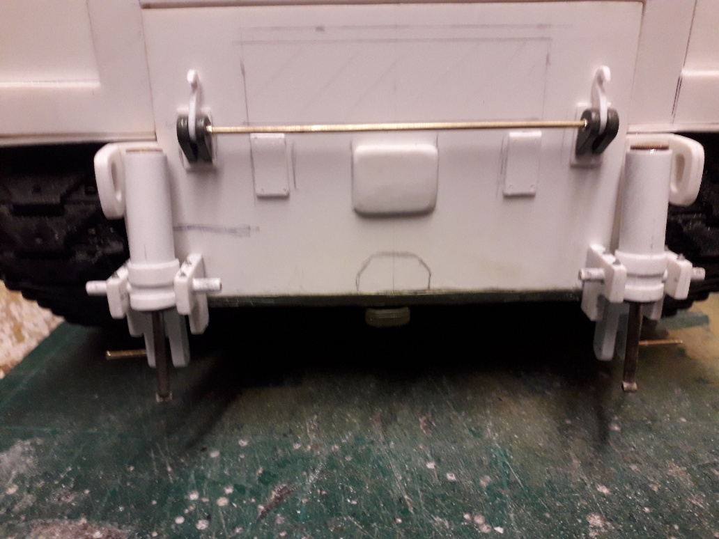 After having found little or no information on the Dozer blade mounts and hydraulic operation i finally managed to get enough info to make a reasonable copy, it was difficult as the hydraulic cylinders that move the blade up and down actually pivot in their mountings as the blade is raised and lowered so i had to construct them to move as the blade moved, in all i think there are about 12 pivot points on the dozer blade and mountings that have to function in order for it to raise and lower and pivot back when raised and then pivot forward when lowered to be at approx 90 degrees to the ground.