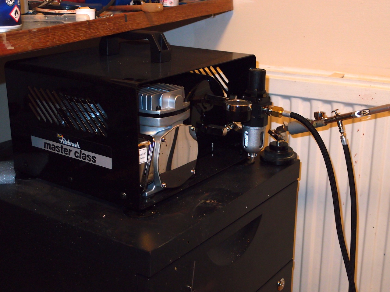 Your Revell compressor looks like a real Pro job, and I imagine it can generate enough puff to cope with any size modelling project.