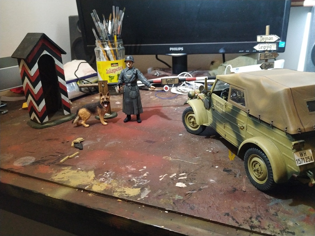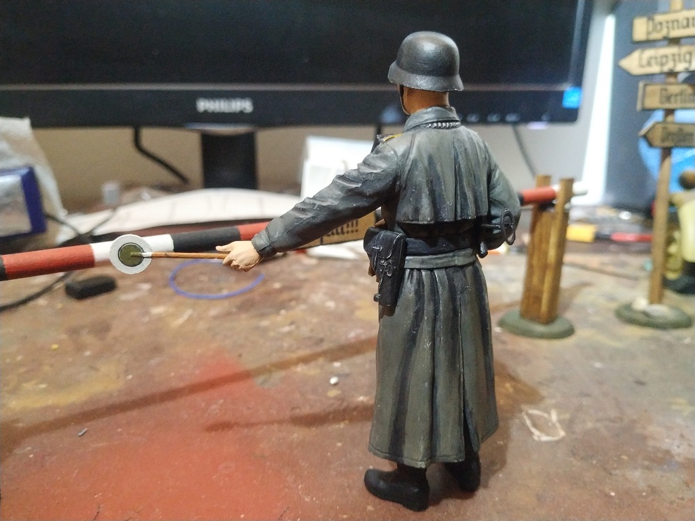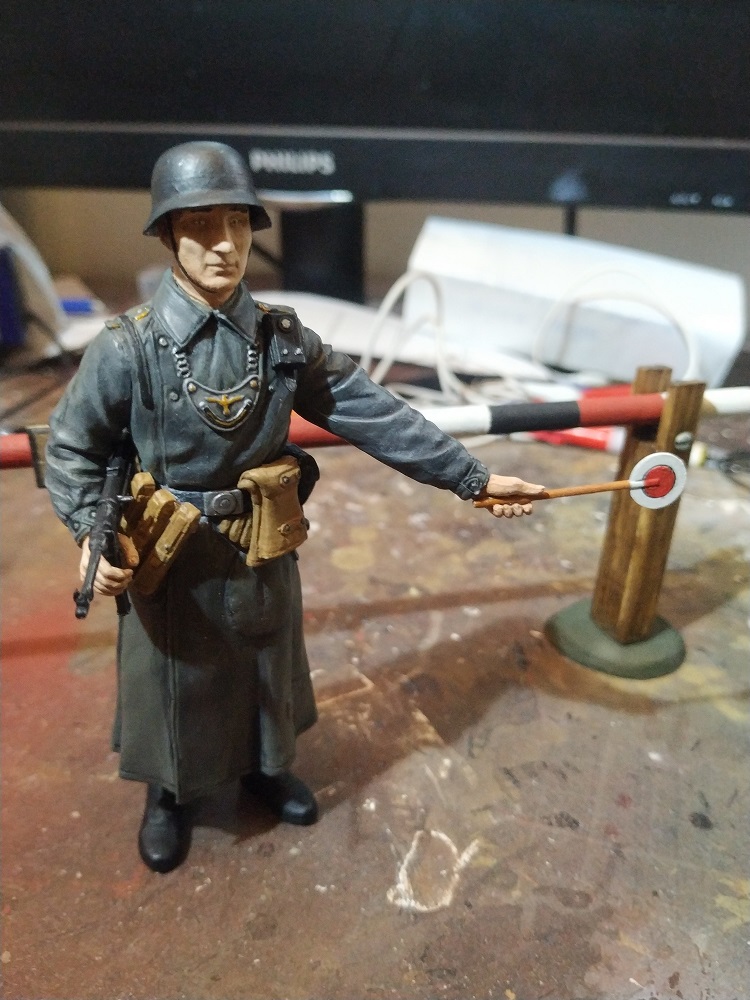 More goodies for my battlefield. My guard hut and barrier was uncomplete with a proper Feldgendarmerie. Now I have one guard to protect the entry to my scale village. No Sherman will go through now.