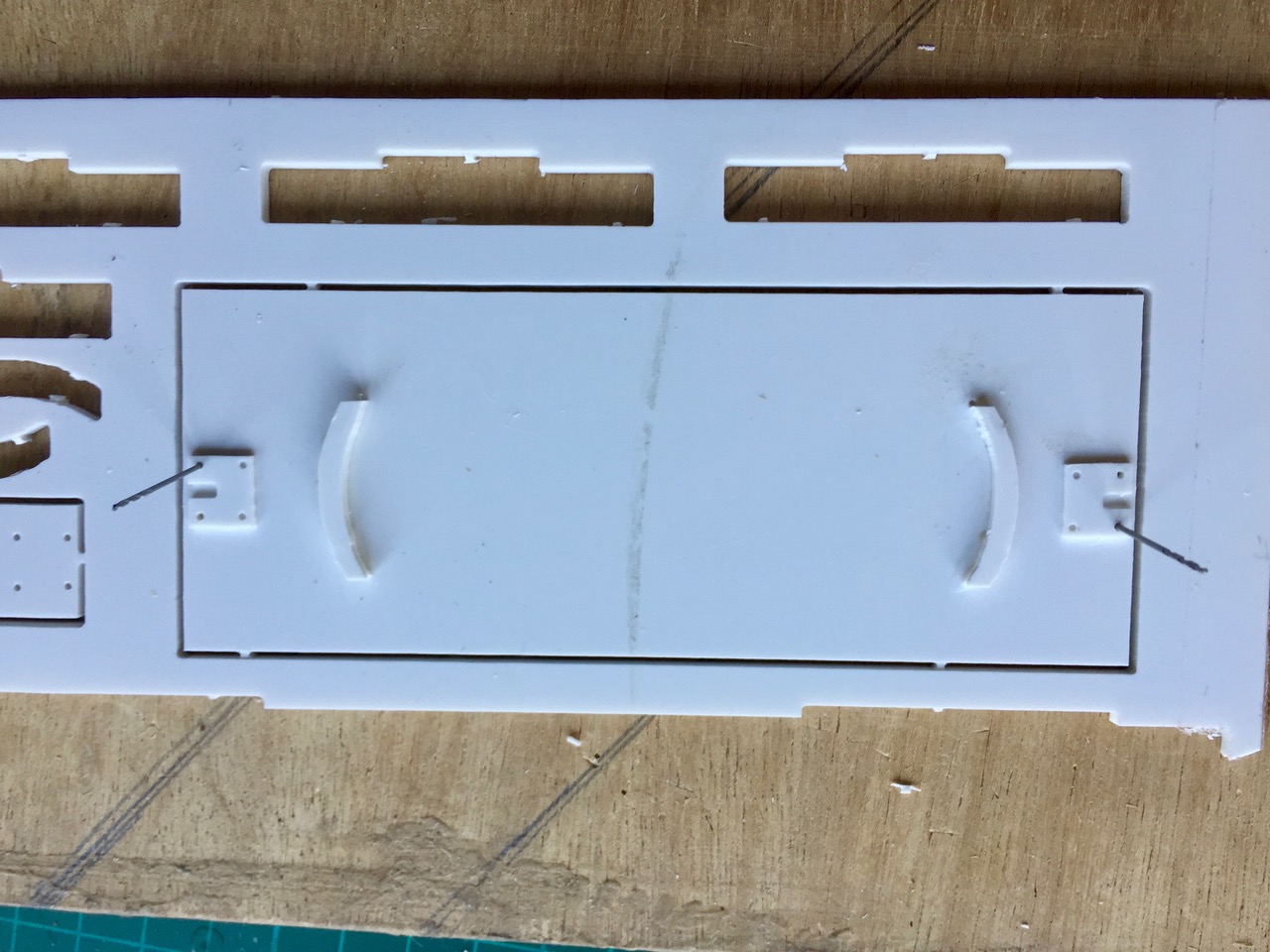 Back to the storage boxes. I got on with (carefully) cutting out some backing pieces for the units. Drilling through these, into the upper hull sides, will provide a discrete means of fixing upper and lower hulls together.