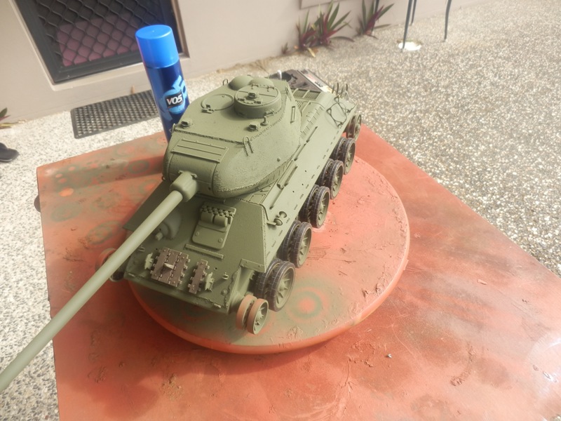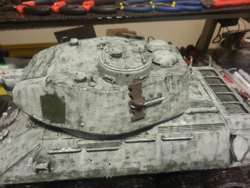 I have left clean a couple of patches on the turret sides for Red Stars to be applied.