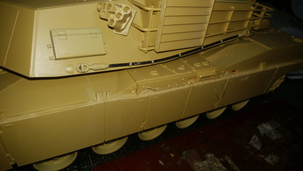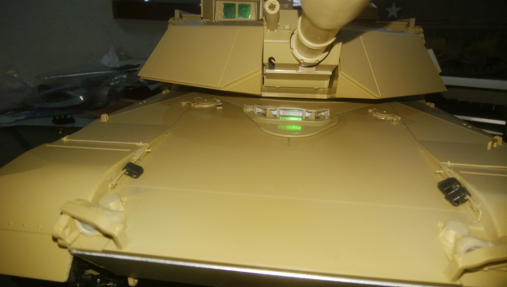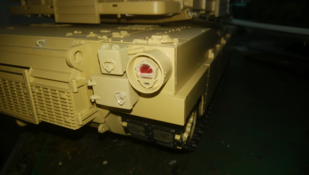 In this model, the triangle cable duct near the range finder is interrupted halfway. It is a unnatural and strange shape. In the old 1/35 Tamiya M1A2 model, there are some terminal boxes at the end of the cable duct. The cable duct disappears on the 1/16 model. This is an obvious omission. It has nothing to do with the strength of RC tanks.