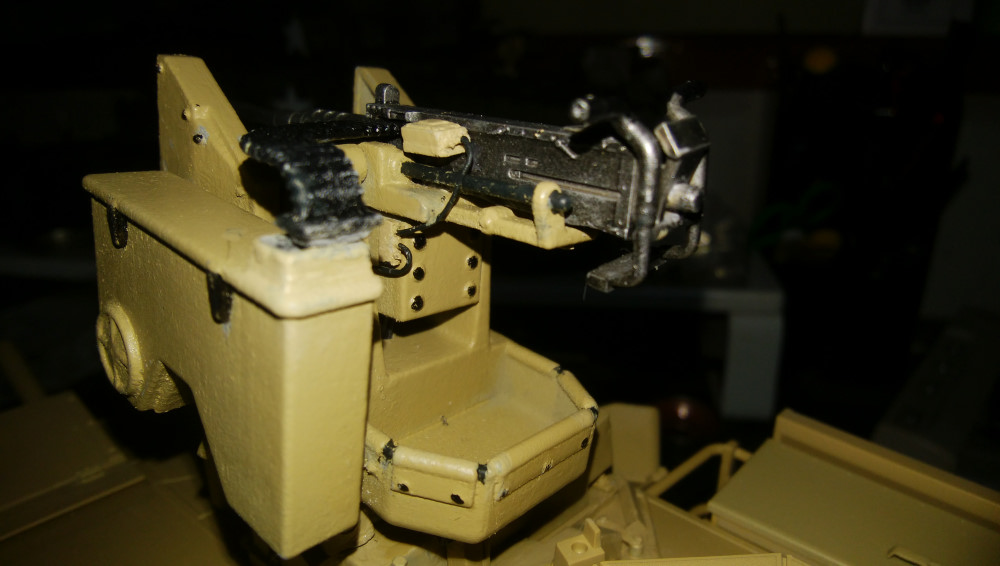 There are still many parts to detail in this model. The black one on the turret is resting when CROWS is folded sideways and stowed.