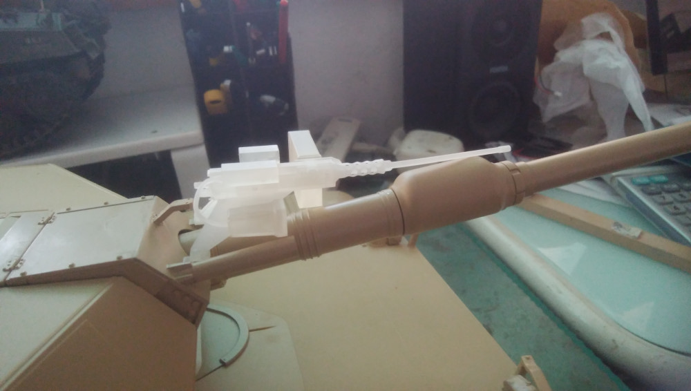 I added a remote control terminal box and cable to the side of the CROWS machine gun. It looks like the feeling of detail has improved a little. The world of self-satisfaction! I will install the anti-sniper gun barrel coaxial gun (3D printed product). This has not been fixed to the shield yet and has been temporarily placed, but if it is installed, it is also necessary to make a cable duct that leads to this.