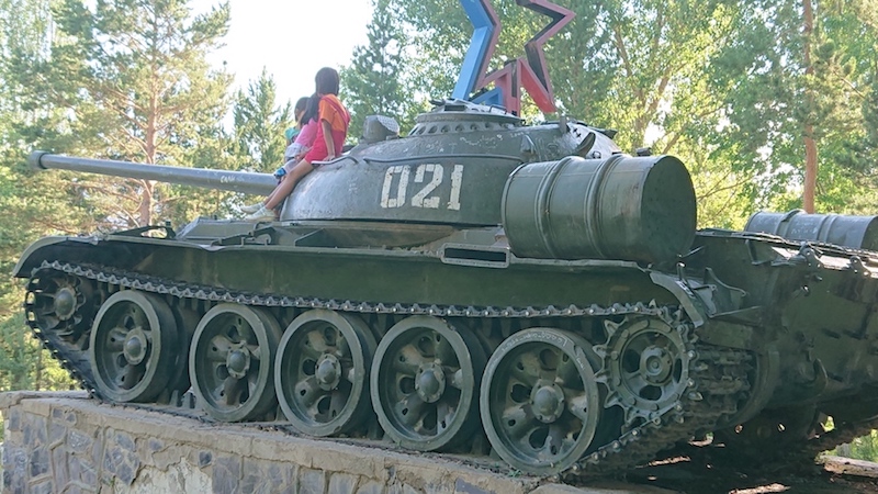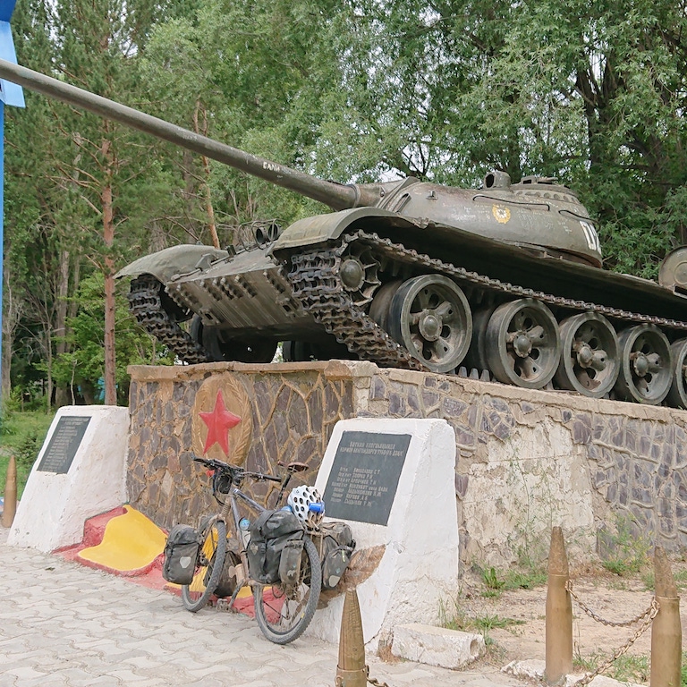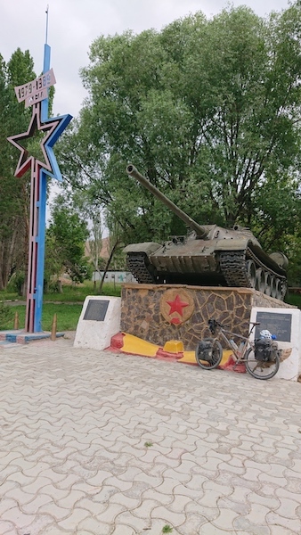 No ripping up of the old war memorials here, they have just moved Lenin to one side and replaced with the old nomad warriors