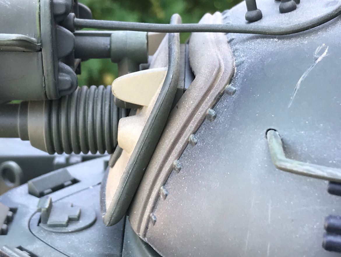 The canvas on the mantlet is reduced in thickness and the third (small) ring is made of plasticard and glued to the mantlet.