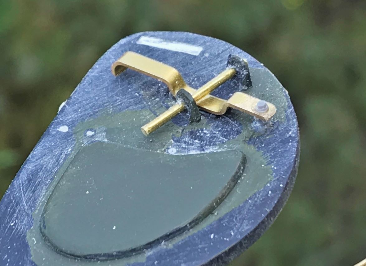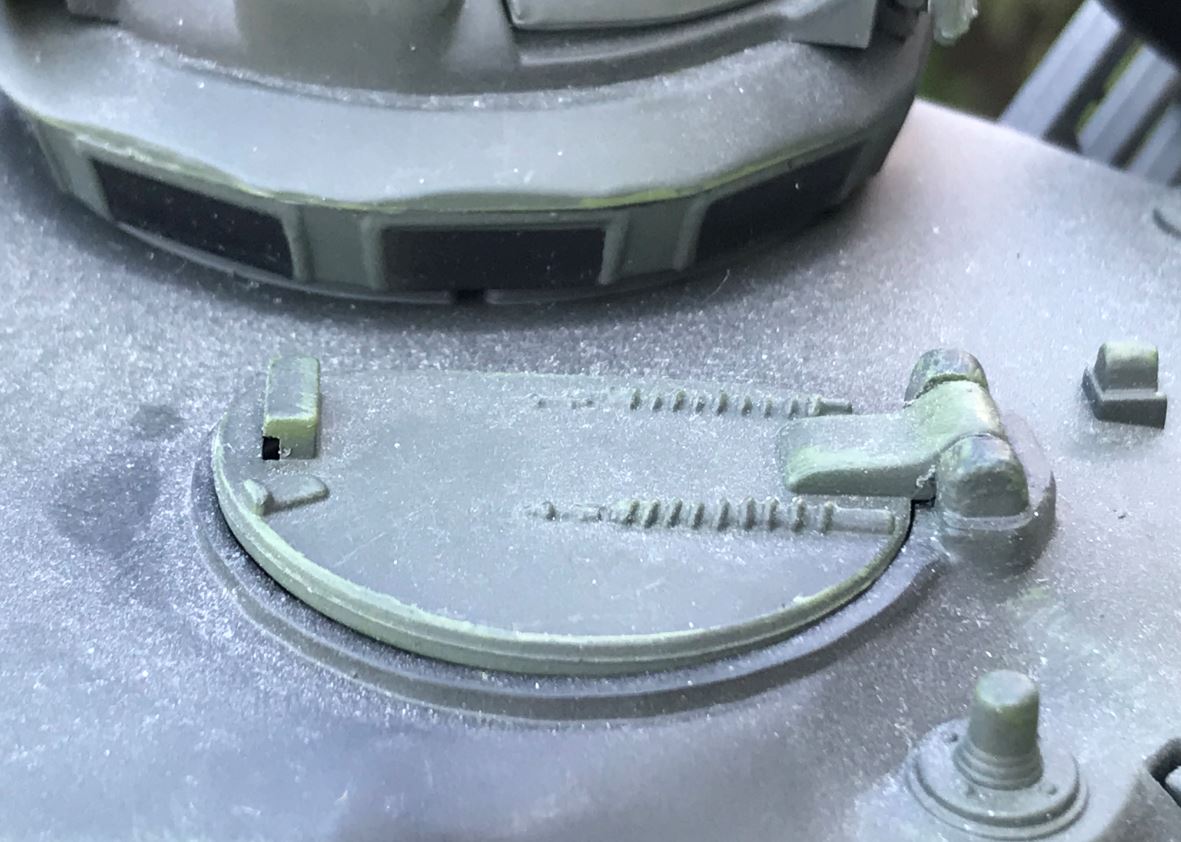 The new loader's hatch. The springs were purchased at Knupfer, rest is scratch using reference picture above. This is really small.