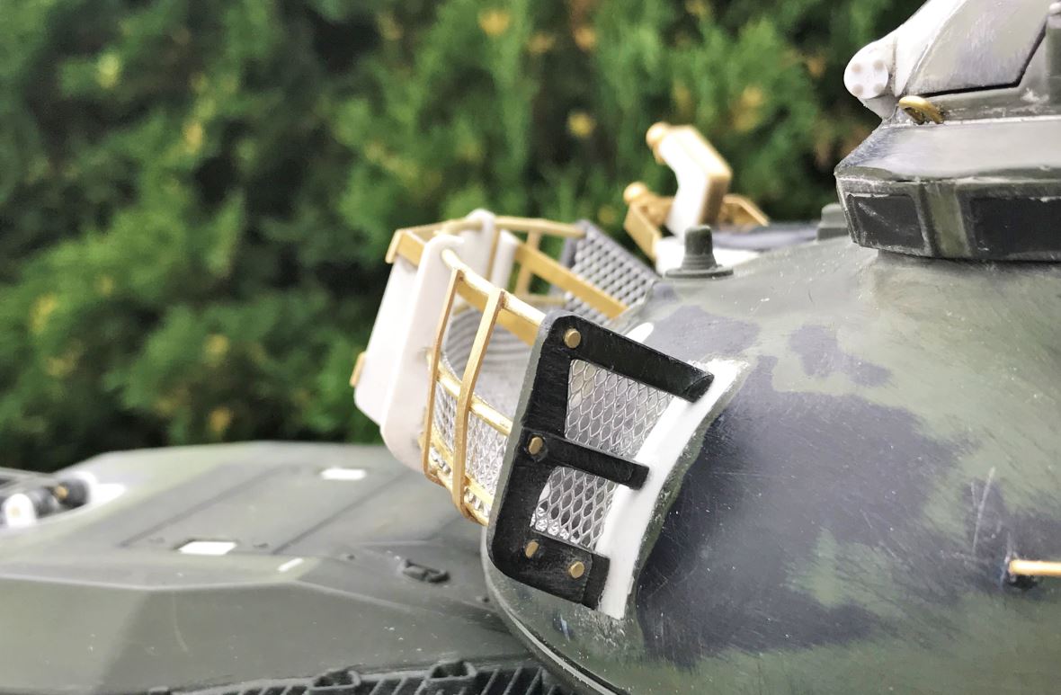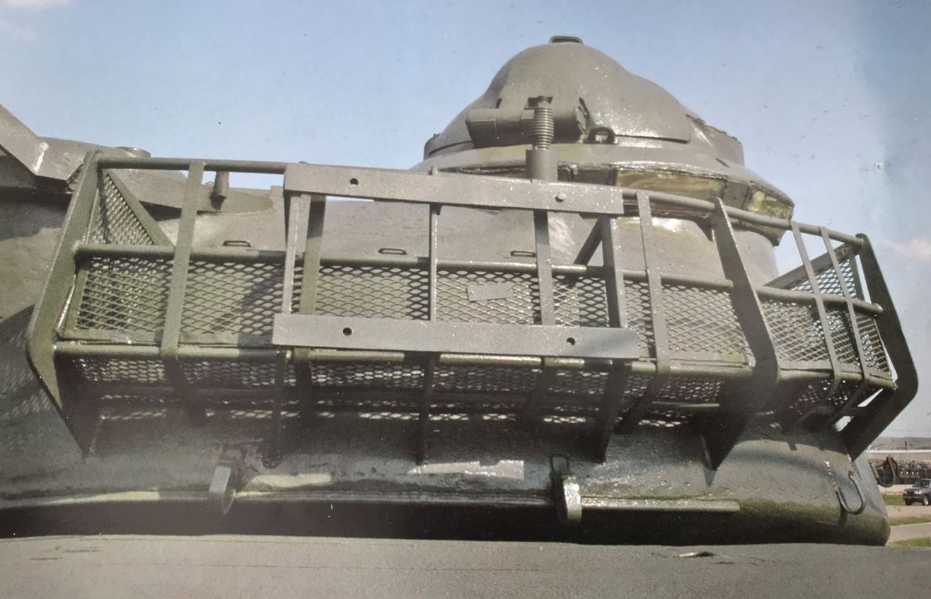 The rear turret basket is another story. This is complicated to reproduce. This M48A3 Mod B has a added bracket with 4 bolt holes allowing the crew to install road wheels or other heavy equipment at the back of the basket.
