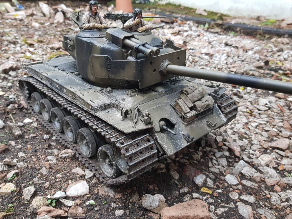 She runs and battles really nicely being tamiya Pershing based and running the full option electrics.
