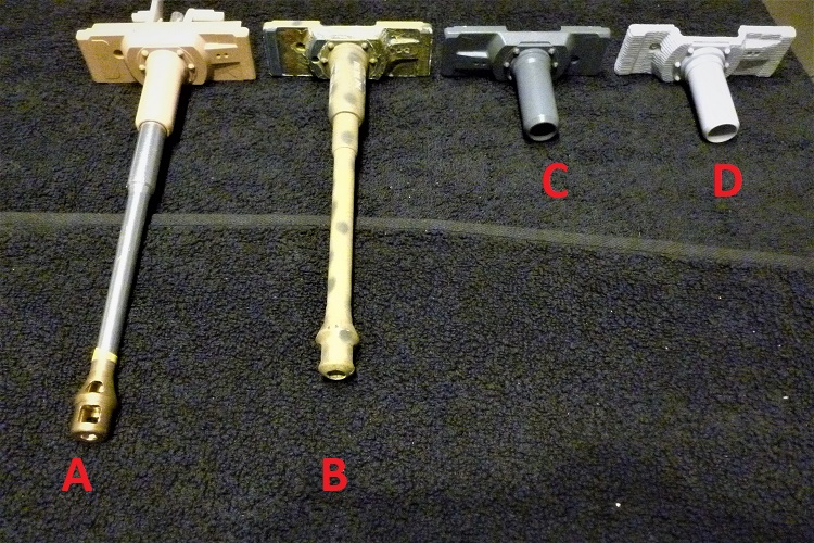 B - is the original HL BB barrel ( Note how much shorter it is moulded in the recoil position)